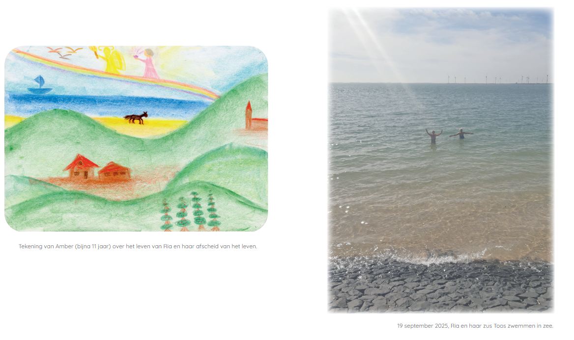 Ria hield van bloemen. Daarom stelt de familie het op prijs als u één bloem meeneemt om rond de kist te plaatsen.