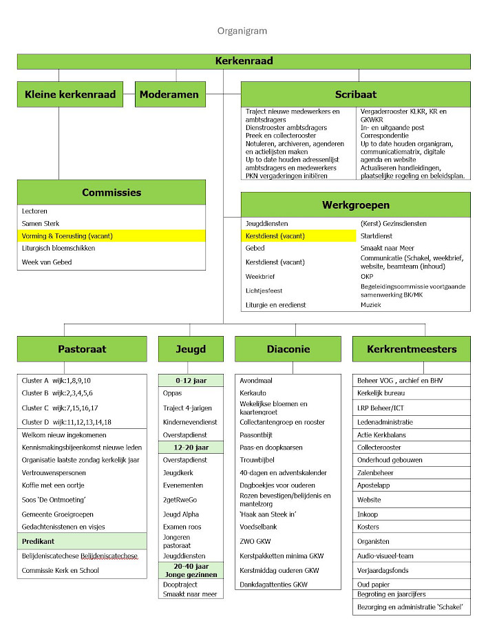 Dit schema geeft aan hoe de Bethlehemkerk is georganiseerd: